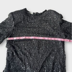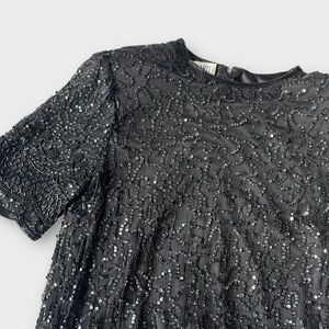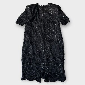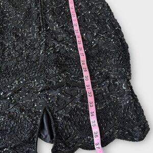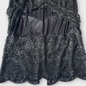 Brilliante by J.A. dress, vintage beaded shift, 80s cocktail dress, silk embellished dress, scalloped hem dress, tiered black mini, holiday party outfit, vintage glam, retro eveningwear
