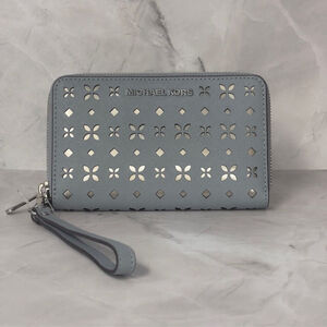 Michael Kors Zip Around Wallet Wristlet Laser Cut Dusty Blue
