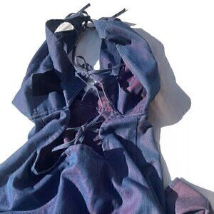 Coach Slim Clip Billfold Card Hold Wallet Brown Classic Canvas Blue Leather