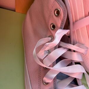 Stylish light pink high-tops with classic design. Comfortable and trendy for everyday wear.