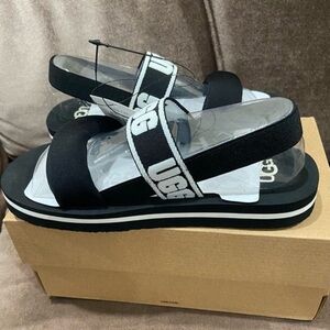 UGG girls Black Sandals with Logo Strap Sz 3 NWT