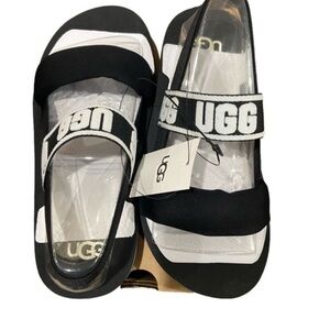Stylish sandals featuring UGG logo. Comfortable and trendy.