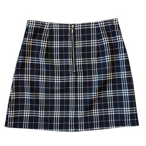 Blue Rain Preppy Plaid Mini Skirt in Black & White. Retro Y2K Schoolgirl Style. Back exposed zipper. Fully Lined. Polyester/Spandex blend.