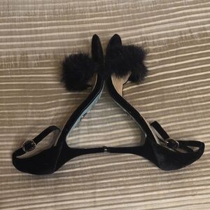 Chic black heels with plush fur detail. Ideal for stylish events. Like new condition. Beautiful and elegant design. Very comfy heel. Formal, wedding, party.