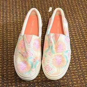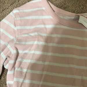 Charming kids dress featuring pink stripes and a blue skirt with rainbow patterns. Perfect for playful days. Some minimal staining, as shown in the pictures.