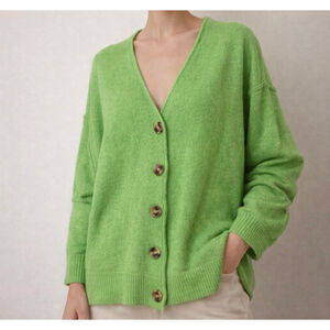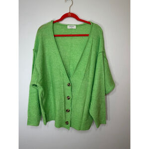 Zenana Lime Green Oversized Cardigan Sweater Large NWOT Fuzzy Knit V-Neck Button