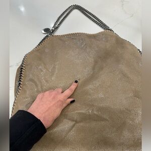 Stella McCartney Falabella Large Vegan Fold Over Tote Shaggy Deer metallic tan