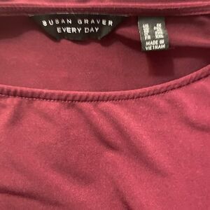 Susan Graver Everyday Burgundy asymmetrical Tunic with sheer bottom, size 1X (95% Polyester, 5% Spandex)
