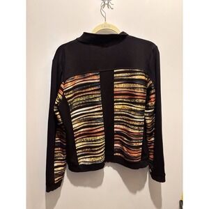 Erin London Ladies Size L Black Zip Up Jacket With Stripes Pit To Pit 19" L 22"