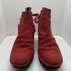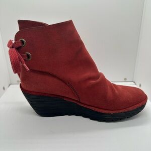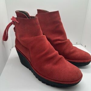 Fly London Yama Platform Wedge Ankle Boots Red Suede Leather with Lace-Up details in back EU 37 (US 6.5)
