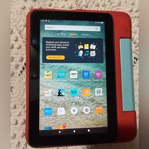 Amazon Fire 7 Tablet with Red and Light Blue Case