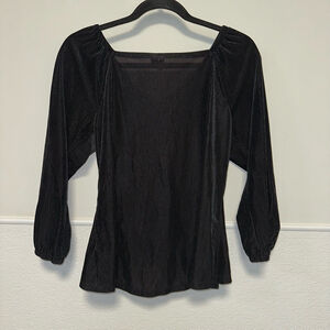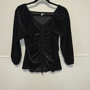 Cato Black Gothic Goth V-Neck Cinched Long Sleeve velvet Boho Top Size Medium