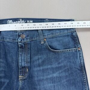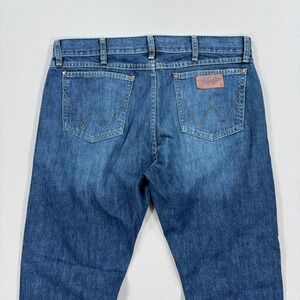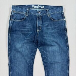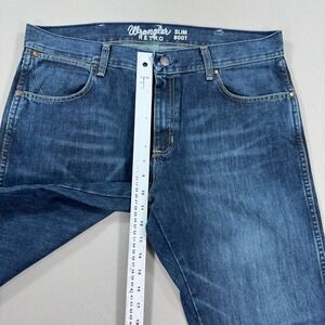 VTG Wrangler Pants Men's 35x32 Blue Dark Wash Retro Slim Bootcut Jeans Straight
