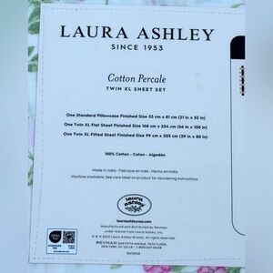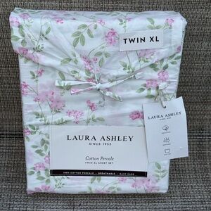 Laura Ashley Fawna Raspberry Green Floral Cotton Percale TWIN XL Sheet Set 3pc