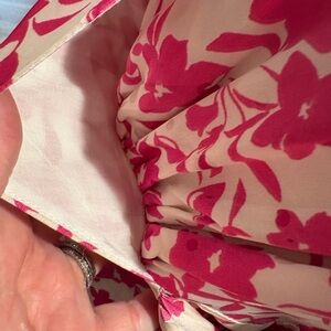 This elegant pink and white midi dress features floral detailing, offering a sophisticated touch to your wardrobe. The midi length provides a timeless silhouette, perfect for both casual and formal occasions. Crafted with care, this dress ensures comfort and style in every wear. Faux wrap style.