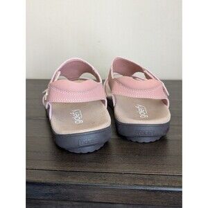 Good used condition gravity defyer (gdefy) t-strap pink sandle. Shows signs of wear, but imperfections are only minor and cosmetic. See photos! Size 6.