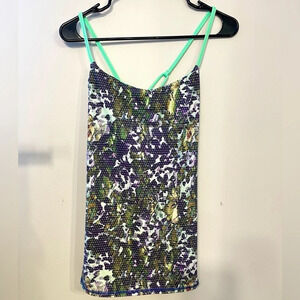 Lululemon | Women's Green Purple Dot Patterned Crossback Athletic Tank Size 8
