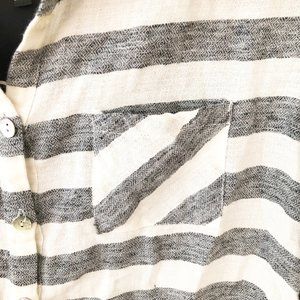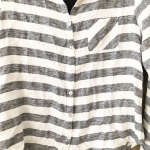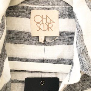 Preppy comfy Chaser Striped Cotton Button Down Collared Shirt Grey White S NWT - long sleeve button down shirt lightweight layered in fall winter or during spring summer tied as a crop top or swim suit coverup