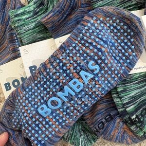 Stylish and comfortable Bombas grippers. Features pink, yellow, and blue designs. Ideal for casual wear.