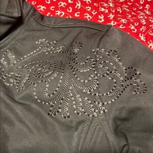 Elegant dark brown utility jacket by Ariat. Features intricate shoulder detailing. Ideal for versatile wear.