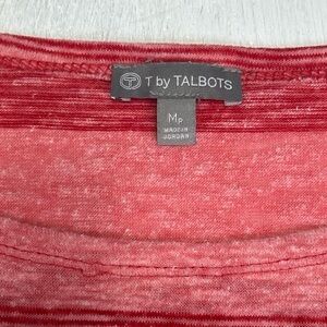 T by Talbots MP Red Striped Knit Top Button Shoulder & Sleeve Petite