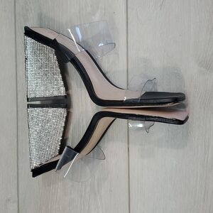 revolve, cocktail, party, chunky, block heel, bling, rhinestones, crystals, night out, girls night, wedding shoes, prom, homecoming strappy, heels, pumps, sandals.