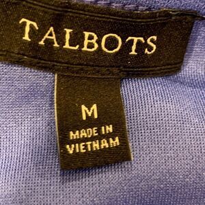 This vibrant blue tank top from Talbots features a stylish tie-front design, perfect for adding a touch of elegance to your casual wardrobe. The sleeveless cut and lightweight fabric ensure comfort and breathability, making it ideal for warm weather outings. With its chic and versatile style, this top is a must-have for any fashion-forward individual.