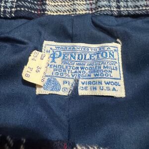 Authentic Pendleton wool trousers, classic blue, navy, and cream plaid. 100% virgin wool.