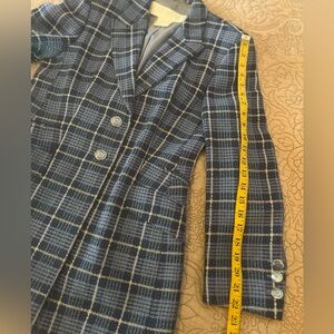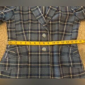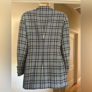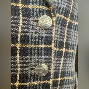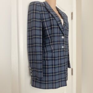 Escada Vintage 1980’s Blue Plaid Blazer Double E Logo Buttons, Size 36
