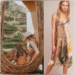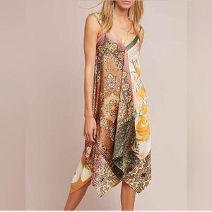 Anthropologie Floral Multi Print Sleeveless V-Neck Scarf Handkerchief Flowy Midi Dress Bohemian Artsy Maximalist.