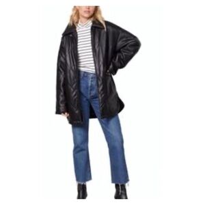 Vera Pelle Coat Black Leather Coat Zig Zag Quilted Puffer Design Size M