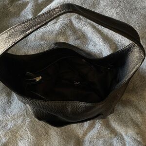 Elegant black leather shoulder bag with pebbled texture. Perfect for daily wear.
