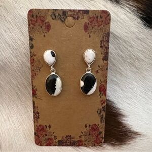 ❤️ White Buffalo 2 Stone Dangle 925 Bohemian Southwestern Earrings 1.13”L