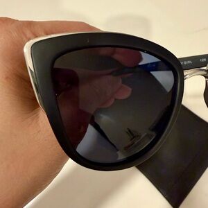 Stylish black cat-eye sunglasses by Quay Australia. Perfect for a modern look.