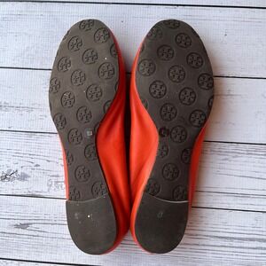 Tory Burch Ballet Flats Orange Leather Gold Logo Luxury Designer Preppy Size 9M