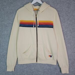 Aviator Nation 5 Stripe Zip Hoodie in Vintage White Medium
