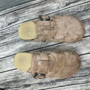 Step into comfort with these stylish tan suede light brown slip-on clogs. Perfect for casual outings, these shoes offer both style and ease.