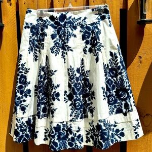 TALBOTS. Petites. Blue/White Animal Print Pleated Skirt. Size 10. Cotton…