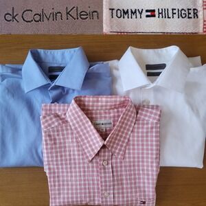 This is a bundle of 3 men's shirts size Medium Each shirt and all their details can be find in my closet. This listing is to offer a price for the bundle of 3. The red and white Tommy hilfiger is in perfect condition, the 2 Calvin Klein shirt are in great condition but have tiny pulled threads. Both Calvin Klein are No Iron, 100% Cotton, Slim fit