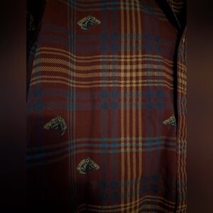 Classic plaid flannel shirt by Salty Dog featuring an all-over horse motif woven into a rich burgundy, navy, and mustard tartan pattern. Soft 100% cotton with a comfortable midweight feel—great for layering over tees or wearing buttoned up.