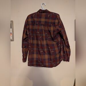 Unique western-inspired novelty print with rustic cabin / heritage vibes. Perfect for fall layering, western style, equestrian lovers, cottagecore cabin looks, or statement flannel collectors.