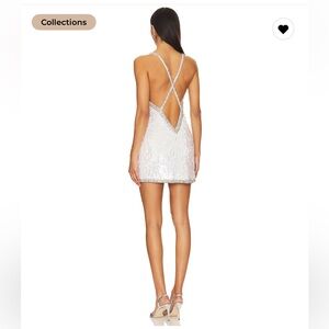 Dazzle in this Retrofete mini dress. Features shimmering white and silver hues. Ideal for glamorous events. Wore once for a couple hours! Open to reasonable offers 🤍