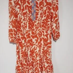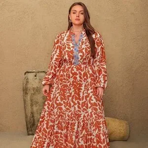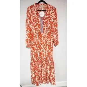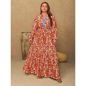 Rustty Dusty Printed Notched Long Sleeve Maxi Dress Size 1XL