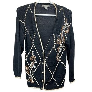 Vintage SK & Company Women's Multicolor Cotton Blend Embroidered Cardigan Size P