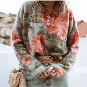 Sezane Fleur Jumper S/M Khaki/Multicoloured Blush Floral French Knit Sweater