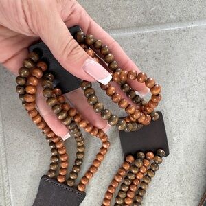 Vintage Esprit brown leather belt with beaded accents - size 80 - 100% leather