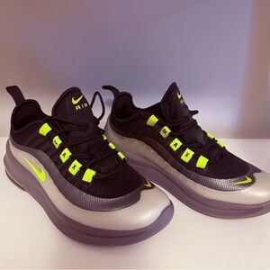 🔥 Never worn — Nike Air Max Axis GS sneakers in a black, grey, and volt colorway .these are eye-catching and ready to elevate any outfit.