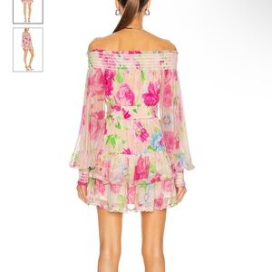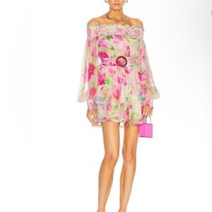 Chic mini dress with vibrant floral design. Features pink, green, and white tones. Perfect for a stylish look. Never worn just tried on & removed tags!!! very cute spring dress! Open to reasonable offers 🤍
