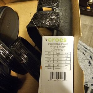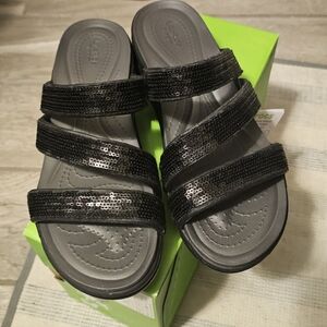 Crocs Women's Boca Sequins Strappy Wedge Sandals, Black Size 8. Brand New