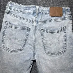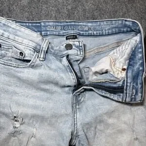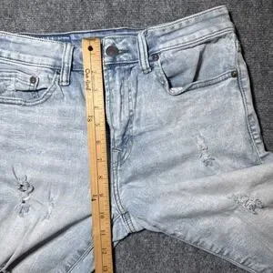 American Eagle Mens Denim Bermuda Short Size 28 Distressed Light Wash 10" Inseam